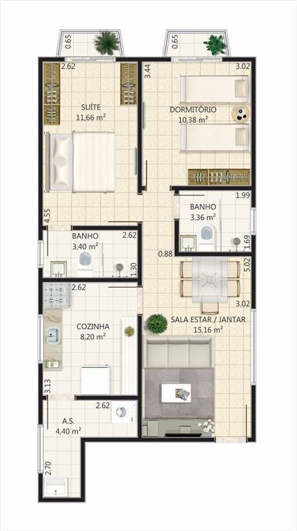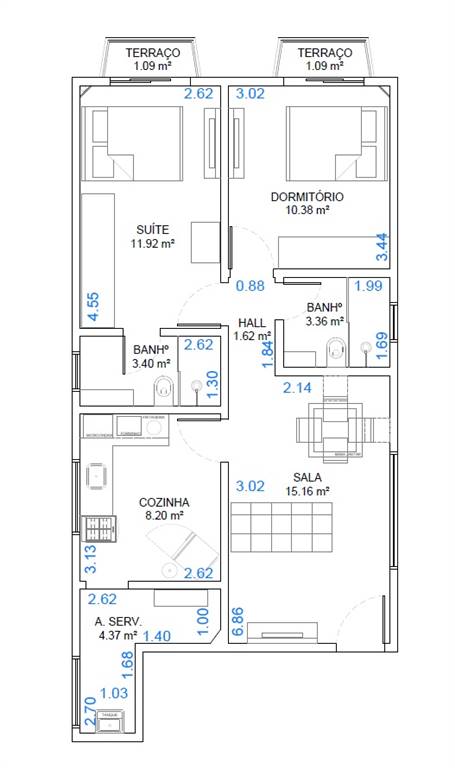 Área Útil70,00m²